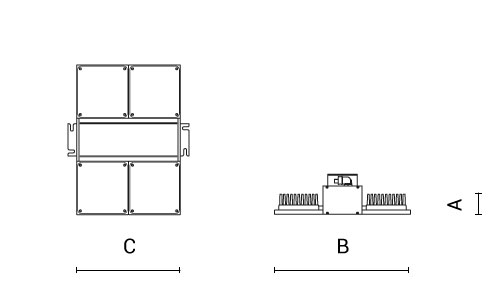 Codice | Ottica | Watt | Lumen | CCT | CRI | Controllo | A | B | C | |