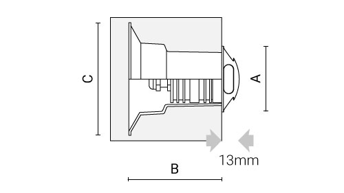 Codice | Ottica | Watt | Lumen | CCT | CRI | Controllo | A | B | C | |