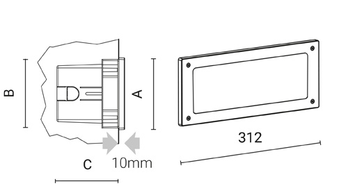 asimmetrica Imax=23° | 8W | 325lm | 4000K | 80 | ON/OFF | 127mm | 121mm | 110mm |